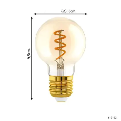 Eglo LED Globe E27 Filament Amber 4W 145lm - 820 Extra Warm White | Dimmable - Replaces 15W