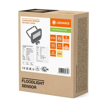 Ledvance LED Floodlight Aluminium Black 8W 1100lm 100D - 830 Warm White | IP65 - Motion And Light Sensor - Symmetrical