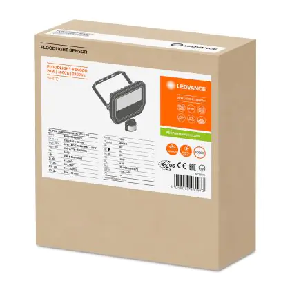 Ledvance LED Floodlight Sensor GEN 3 White 20W 2400lm 100D - 840 Cool White | IP65 - Motion and Light Sensor - Symmetrical