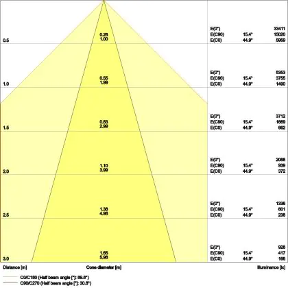 The colour code is a combination of colour rendering (CRI) and light colour (Kelvin). The first number indicates the colour rendering (1 = very poor colour rendering, 9 = maximum colour fastness). The second and third number contains the light colour. Example: the colour code 830 consists of good colour rendering (8) and warm white light (3000K). |
