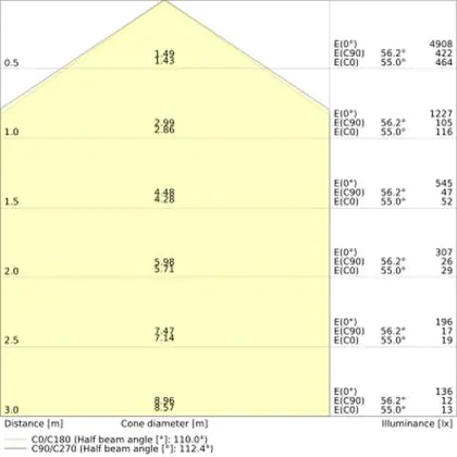 The Luminous Efficacy (lm/W) indicates how efficiently a light source uses energy. We divide the number of lumens by the wattage. The higher the number, the more efficient a product is in terms of energy consumption. LED lighting has a considerably higher lumen/Watt ratio than conventional lighting.