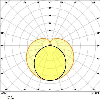 The Luminous Efficacy (lm/W) indicates how efficiently a light source uses energy. We divide the number of lumens by the wattage. The higher the number, the more efficient a product is in terms of energy consumption. LED lighting has a considerably higher lumen/Watt ratio than conventional lighting.